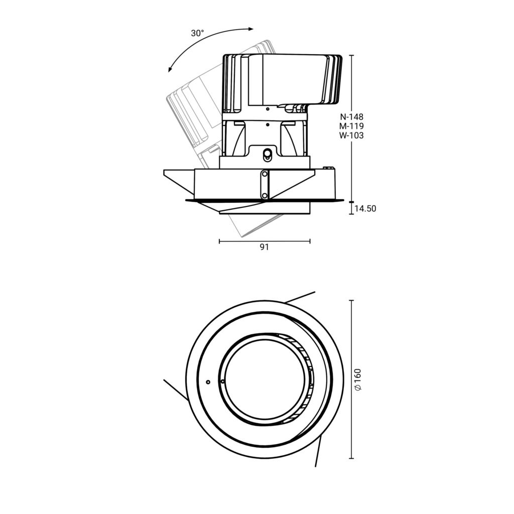 | 3000K | 39° | 48 W | 4401 lm | <9 | IP20 | 92 lm/W | Axis L Recessed Adjustable 3K N |