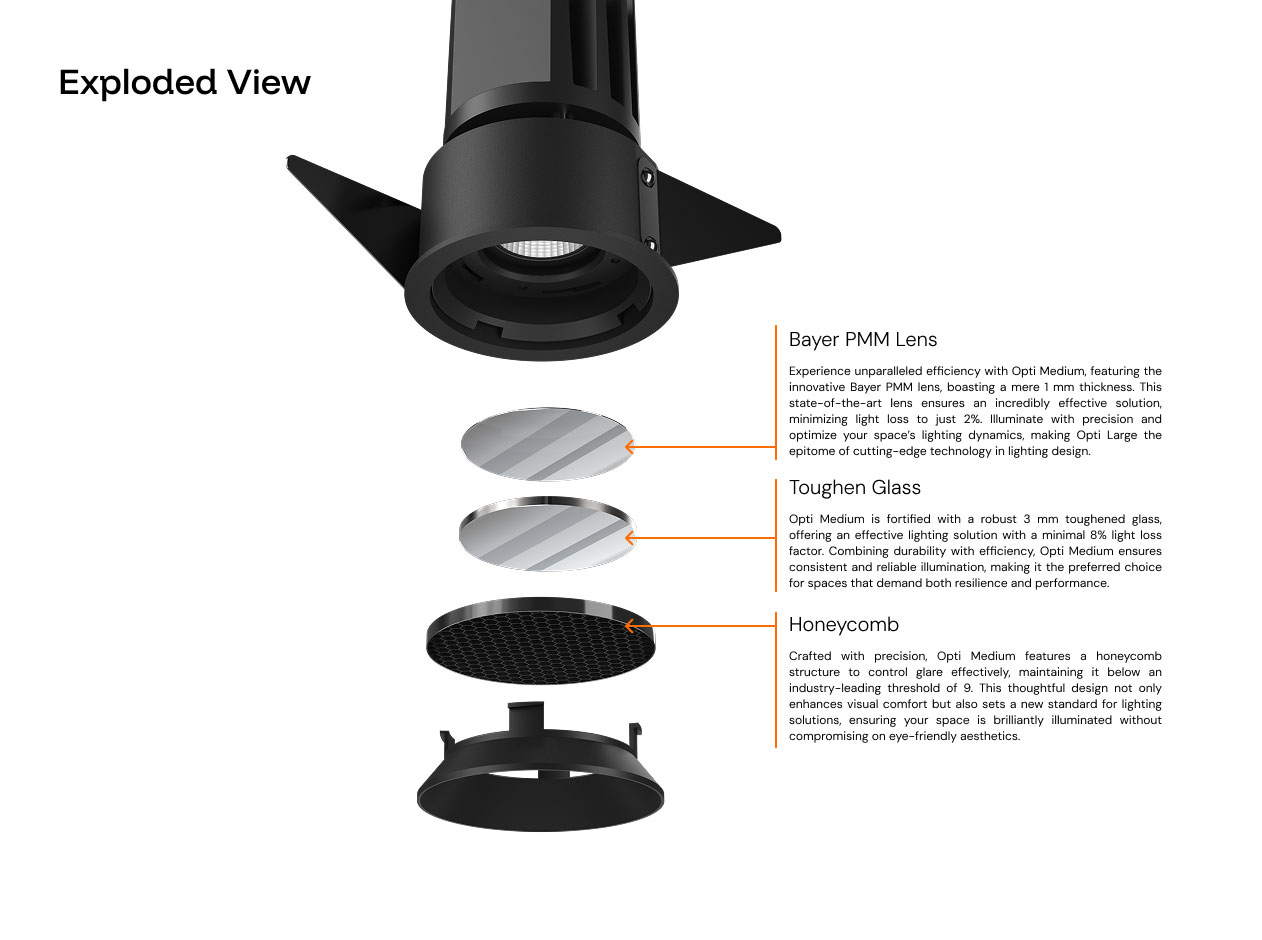 Sharp cut-off, minimal spill. lndustry leading optics, crafted in exclusive partnership with Bartenbach