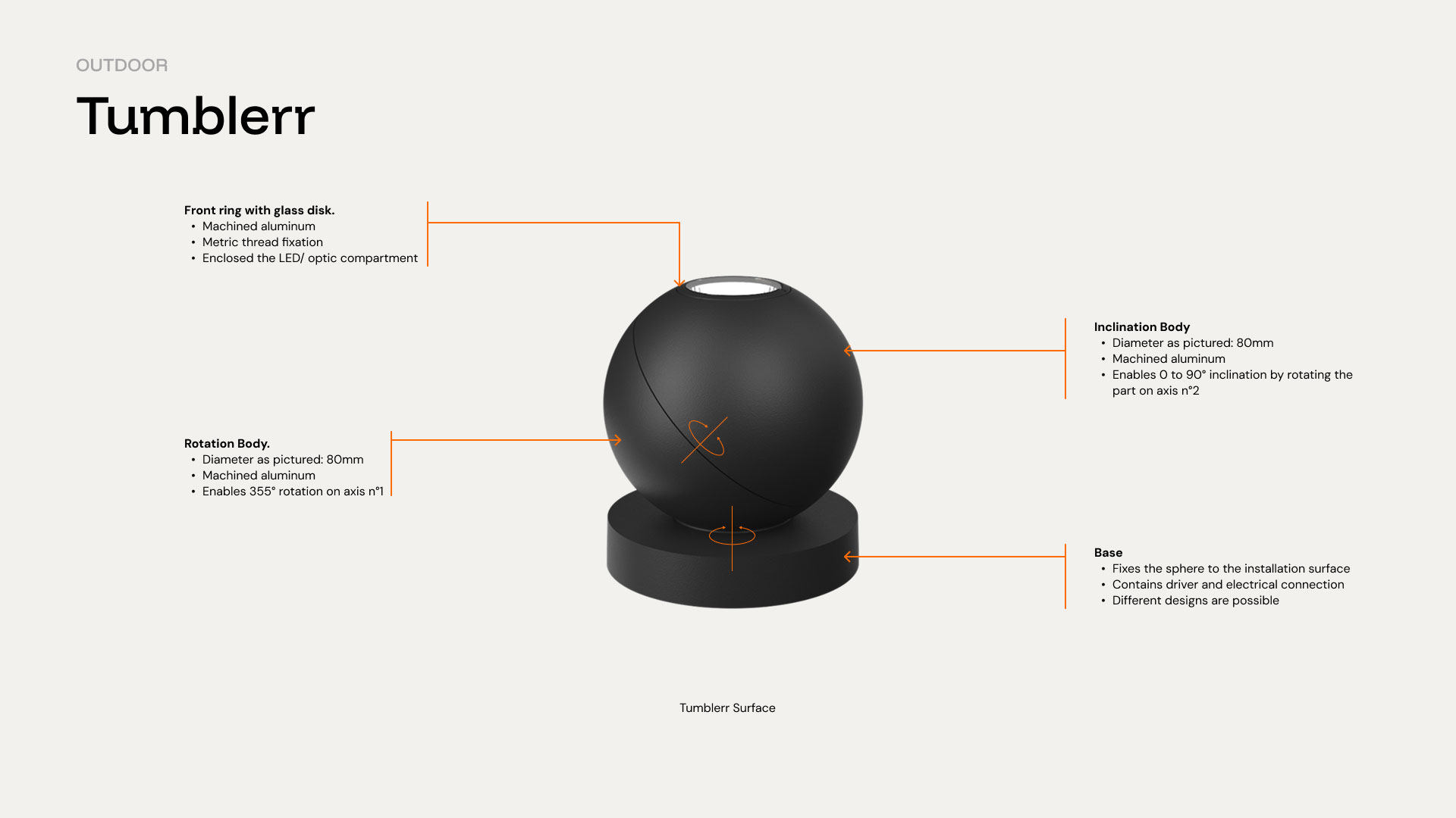 | 3000K | 35° | 10 W | 823 lm | <9 | IP67 | 85 lm/W | Tumblerr Surface Mounted 3K 35° |